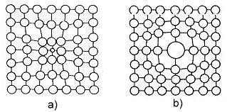 Yarı çapları 1 Armstrong’dan daha küçük H, N, B, O ve C atolarının ana metalin atomları arasına girmesiyle oluşur. Arayer atomları kendilerini çevreleyen atomları iterek kafes yapısını çarpıtabilir.